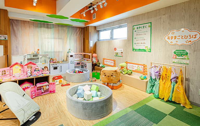 小さなお子さま向けの「おままごとひろば」では、キッチン遊具を始め、たくさんのおもちゃで遊ぶことができます。