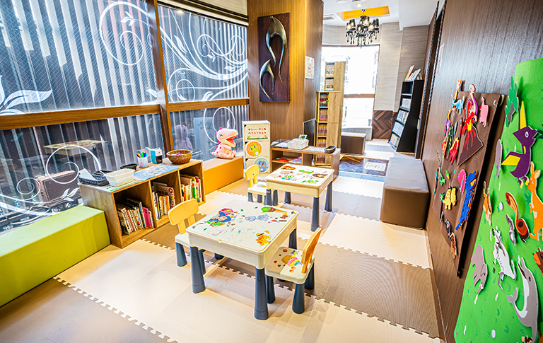 折り紙・塗り絵などの工作が愉しめます。漫画も1,200冊以上あるから、ママ・パパもお子様の隣でリラックス♪