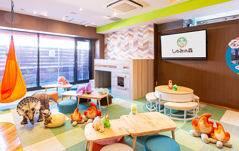 キッズスペース、キッズパーク、キッズカフェとして遊べる子供達の遊び場『しゅみの森』へ家族みんなで遊びに来てください。