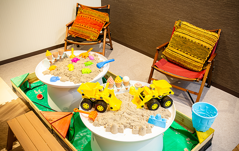 小さなお子さま専用の室内ミニお砂場。キネティックサンドの不思議な感触に、お子さまも夢中!